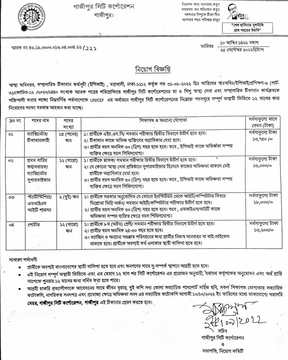 Gazipur City Corporation Job Circular 2023 Short Summary